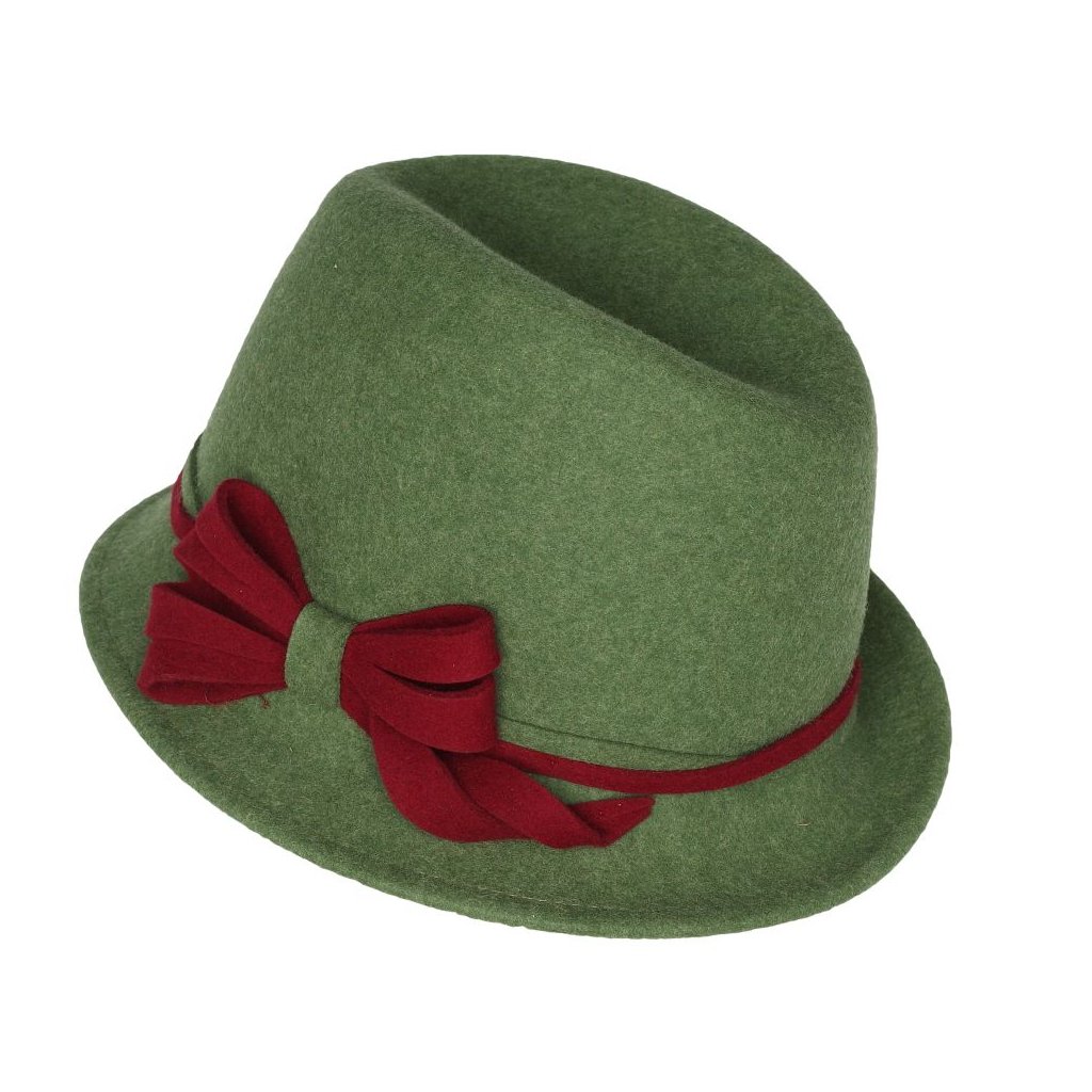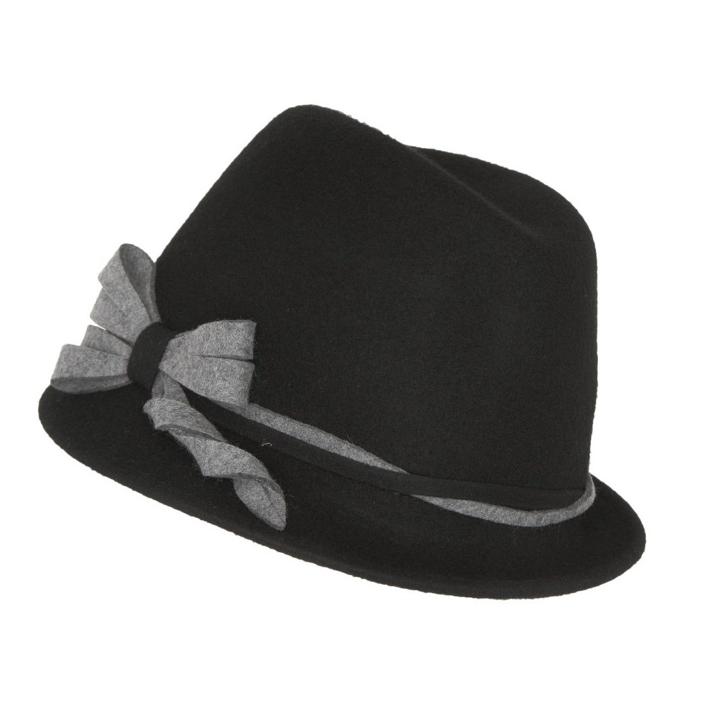 Dámský elegantní plstěný klobouk asymetrického tvaru s kontrastní mašlí ožíví Váš každodenní vzhled a doplní váš outfit k úplné dokonalosti. Má velici zajímávý tvar, kde je pravá strana klopena dolů a naopak levá strana zvednuta nahoru. Klobouk je bez podšívky a má vnitřní pružný potní pásek. Odpovídá obvodu hlavy: 56 - 57 cmDoplňkové parametry