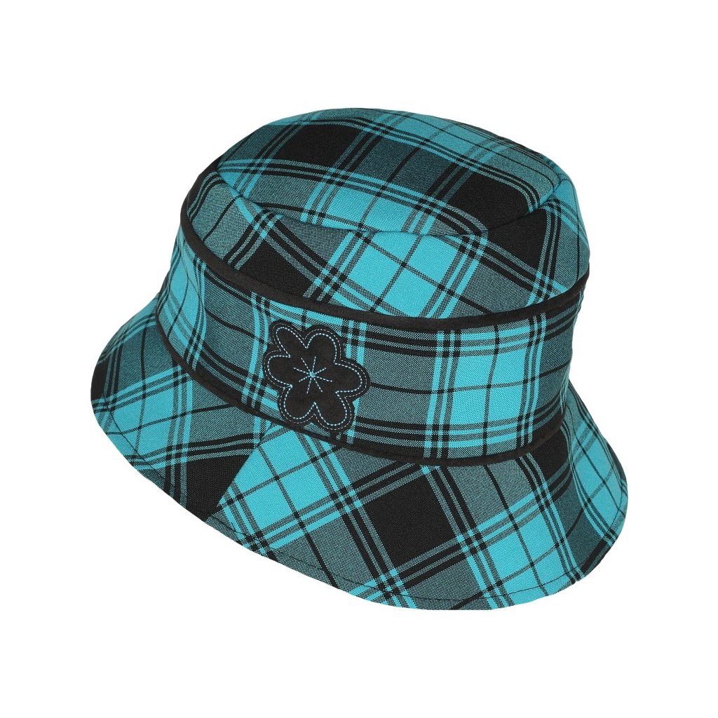 Dámský kostkovaný klobouk klopeného tvaru "Bucket hat" skvěle doplní Váš každodenní vzhled a tím oživí Váš outfit. Má vnitřní viskózovou podšívku a bavlněný potní pásek.Doplňkové parametry