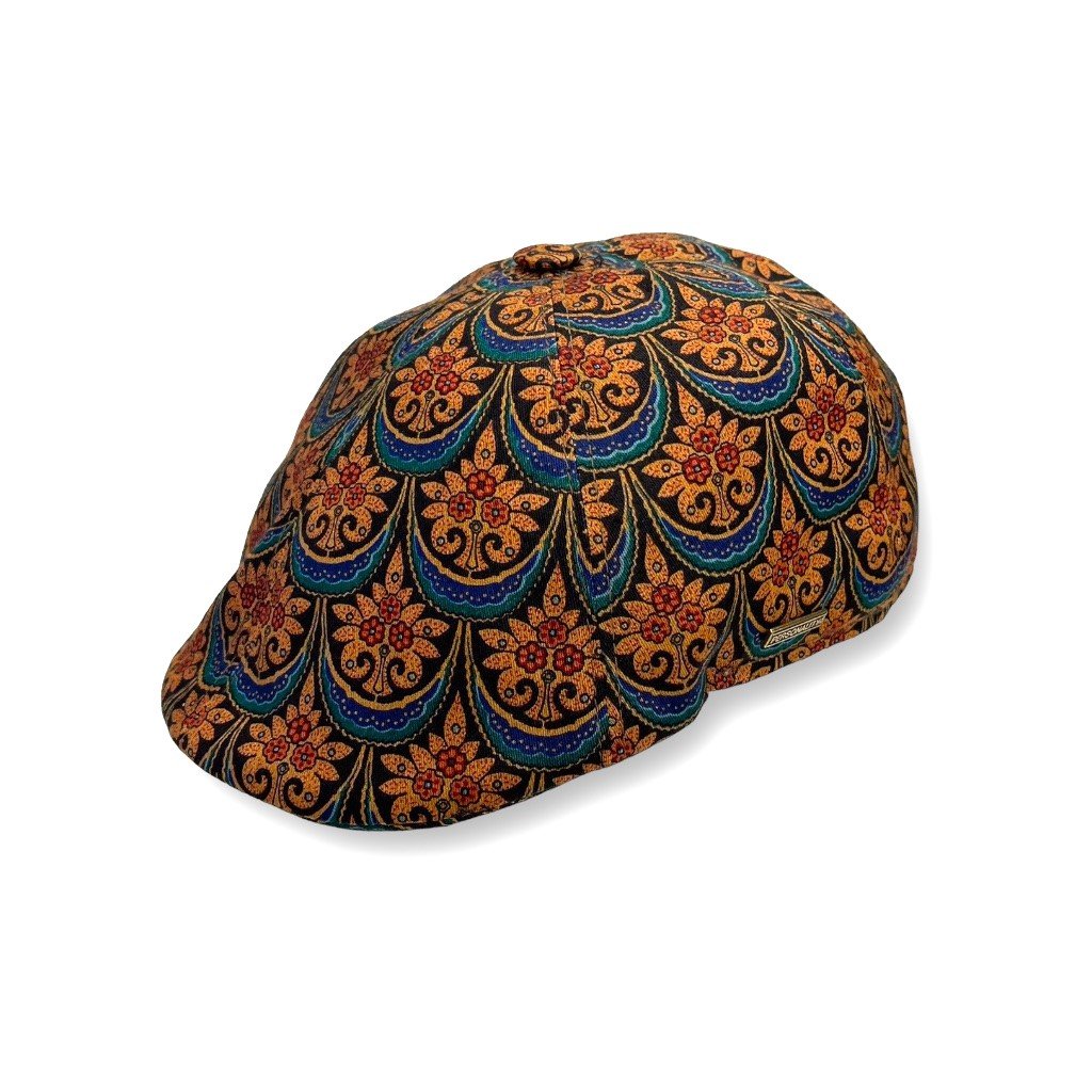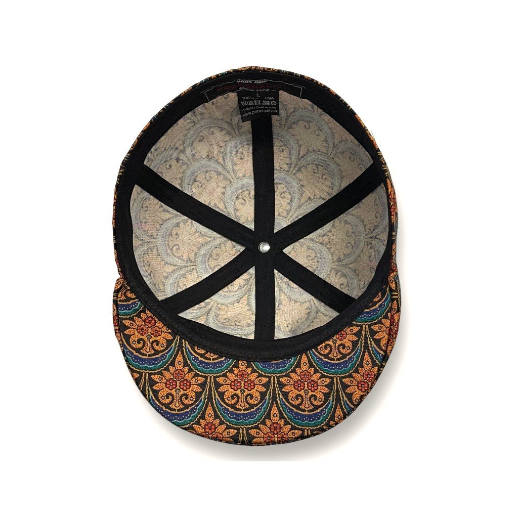 Klasická pánská bekovka ušita z exkluzivní látky "Designs by Arline Sumida pro 5th Avenue Design" ve stylu Art Deco s výrazným vzorem. Je skvělou volbou pro odvážné muže, kteří hledají stylovou bekovku a chtějí být nepřehlédnutelný. Je předsražená a má povrchovou úpravu Scotchgard, která poskytuje látkám voděodolnost a pomáhá je chránit před vznikem skvrn. Čepice je ideální ke sportovně elegantnímu stylu. Je lehká, bez podšívky, vhodná na jaro i léto. Lze ji uložit do tašky. Již od roku 1992 si zakládáme na precizním ručním zpracování a kvalitních materiálech, z kterých vyrábíme naše pokrývky hlavy u nás v dílně v Praze 4 – Modřanech. Chcete kvalitní čepici české výroby? Neváhejte a obraťte se nás. Rádi vám s výběrem poradíme.Doplňkové parametry