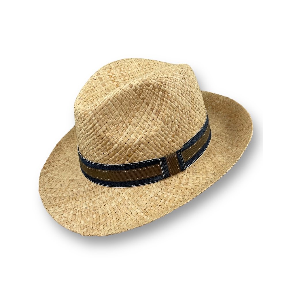 Pánský letní slaměný klobouk Fedora - 100% Raffia