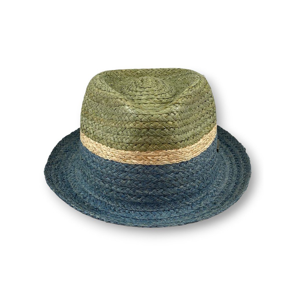 Pánský letní slaměný modro-zelený klobouk Trilby