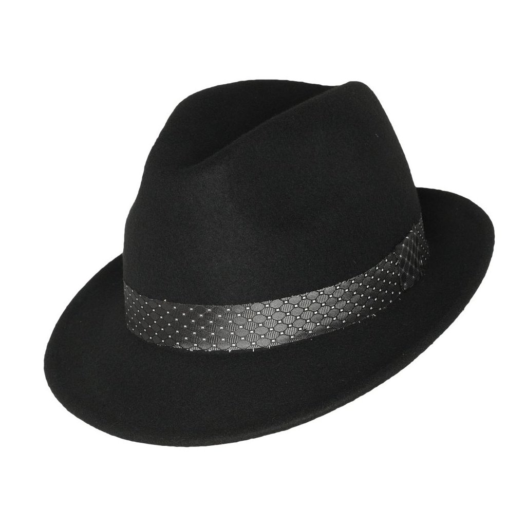 Pánský trilby klobouk zdobený elegantní saténovou stuhou. Vhodný na jaro, podzim i zimu. Ideální společník na každý den. Tento luxusní klobouk je vyrobený v Itálii. Má kratší krempu.Doplňkové parametry