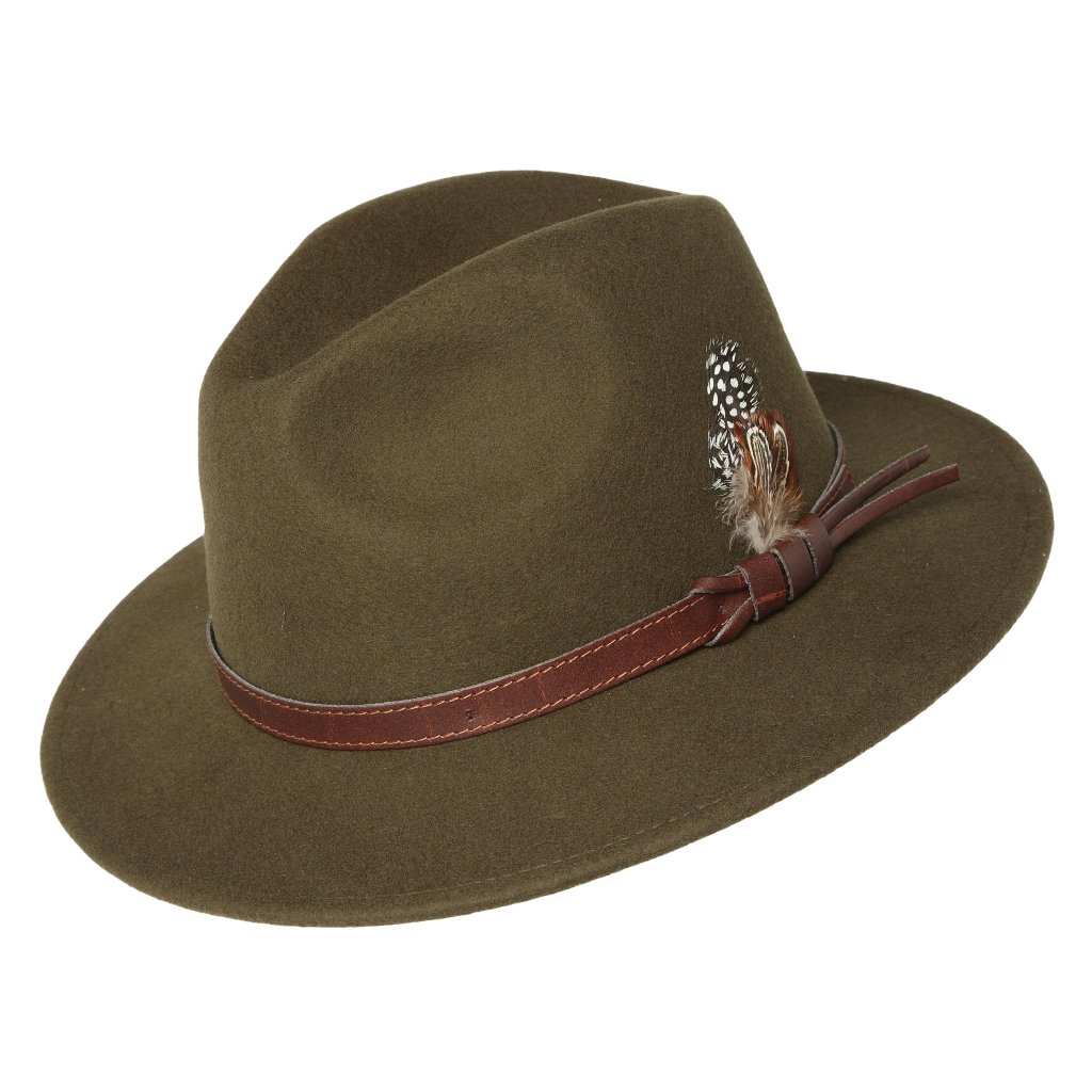 Krásný pánský klobouk klasického tvaru zdobený koženým páskem stejné barvy a doplněn o peří, které můžete i vyndat. Klobouk má rovnou krempu, která nelze tvarovat. Kvalitní provedení HIGH PERFORMANCE PROTECTIVE FINISH zaručuje nepromokavost a možnost použítí ve vlhkém prostředí. Šířka krempy: 5,5 cmDoplňkové parametry